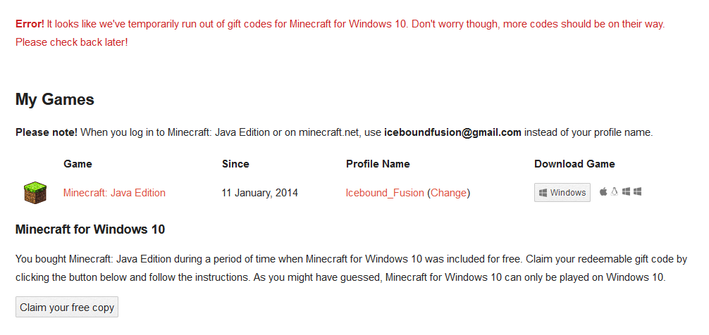 We can assist with Windows 10 codes once you've sent us an email at https://help.minecraft.net/hc/en-us/requests/new …. Remember to attach your Transaction ID for the Java account. ^EG