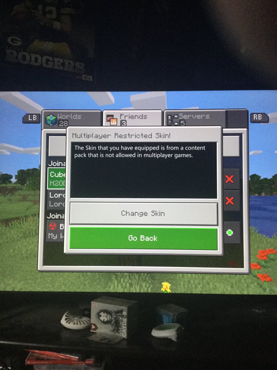 @MojangSupport I’ve been using the Arbiter skin from the Halo pack since it came out. But ever since the update with PS4 crossplay, I cant use it or other specific skin packs. I always get this message when I try to join my friend’s realm. Please helppic.twitter.com/EcKgTNodEe