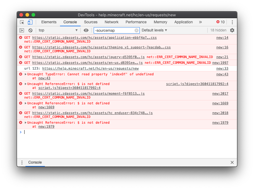Hey @MojangSupport I'd like to create a ticket, but unfortunately I'm unable due to JavaScript/SSL errors.pic.twitter.com/dccyTEQleI