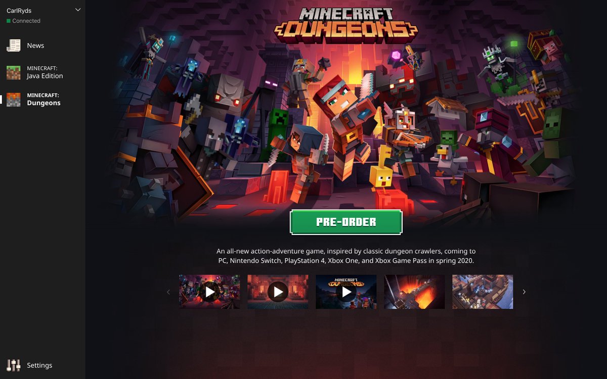 I feel that @Mojang and @Minecraft are teasing me by having @dungeonsgame in the macOS launcher and having a 'Pre-Order' button on it... when it's only available on Windows. So, @MojangSupport is Dungeons going to be available on Mac or do I have to use Windows on Bootcamp?pic.twitter.com/XZOfcA9xFh