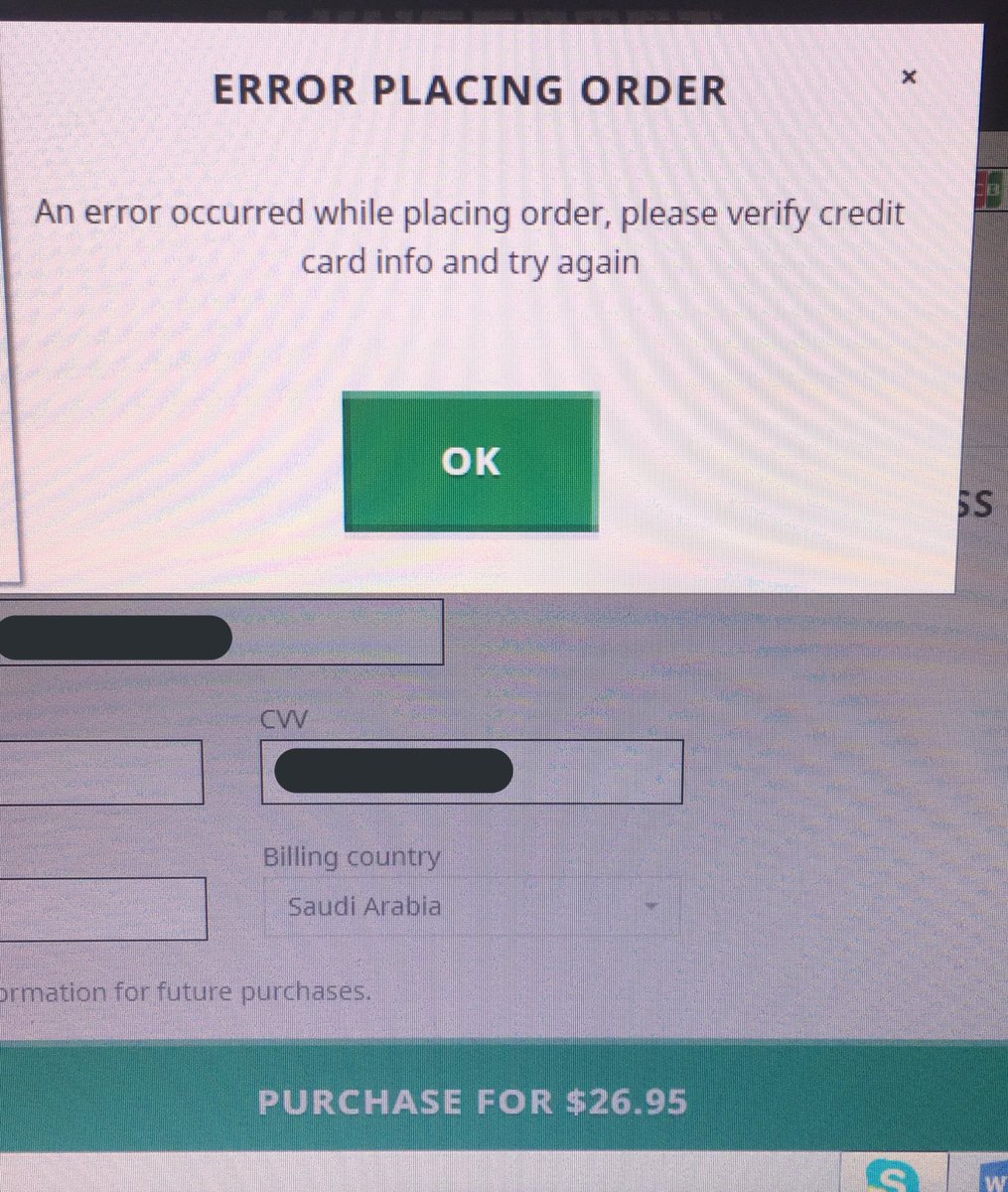 We're sorry for the trouble making a purchase! You may find some useful troubleshooting tips on the following help article: https://help.minecraft.net/hc/en-us/articles/360029642712-I-can-t-make-a-purchase … I hope this helps! ^SA