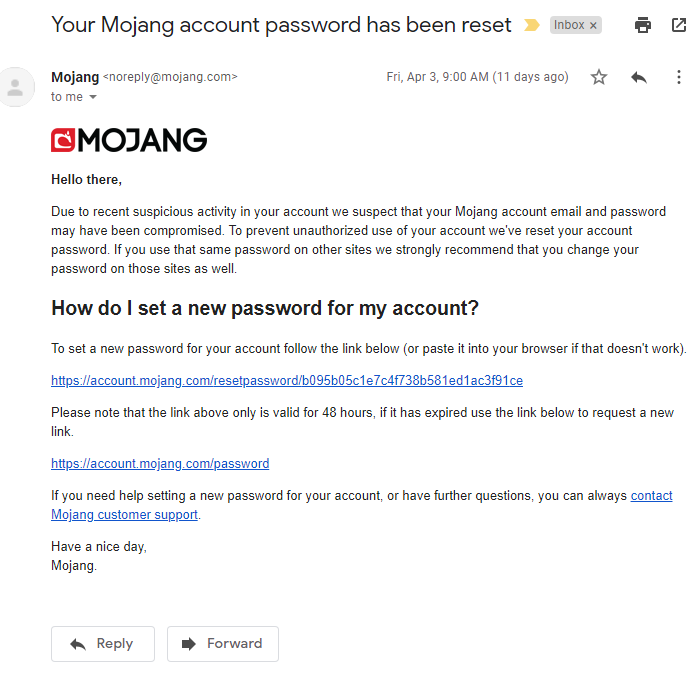 Problems with Minecraft or a Mojang account? Let us know! We're open 7 days a week, 24 hours a day! Email support via http://help.minecraft.net/hc/en-us