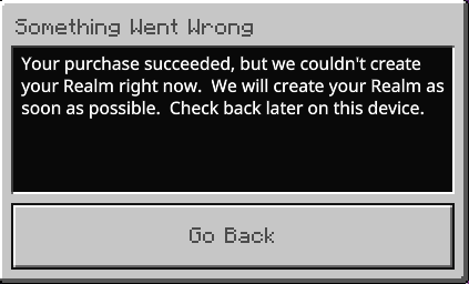 @MojangSupport I am no longer getting these messages saying that my purchase has been succesfull but the realm couldn't be made. The game is just acting as if I have no realms subscription but you still have my money. I still cannot make a realm, please help.