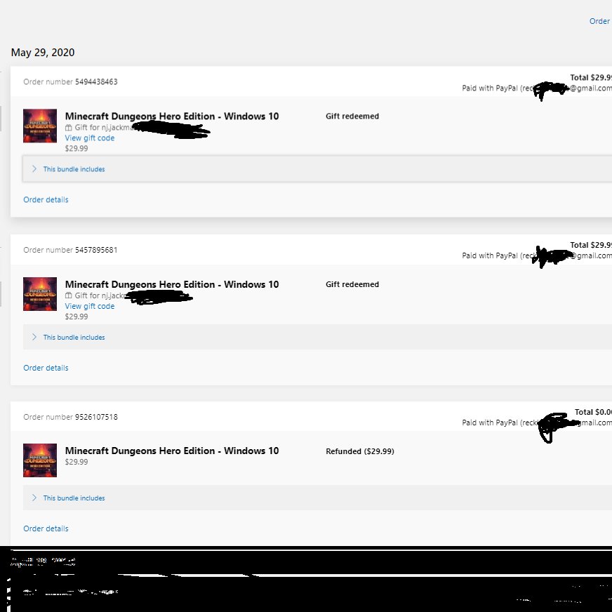 @MojangSupport Having issues with past Hero edition purchase, can't figure out who/where to contact because half of the support links go to Microsoft the other half to Mojang. Bought a copy and gifted one that got double charged, contacted for a refund, but refunded wrong one.