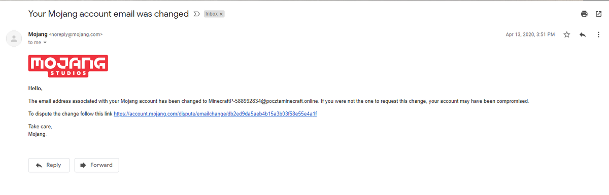 @MojangSupport My account has been hacked and sold how do i recover this and the link given to me now says invalid Ticketpic.twitter.com/CPpzmSK1AQ