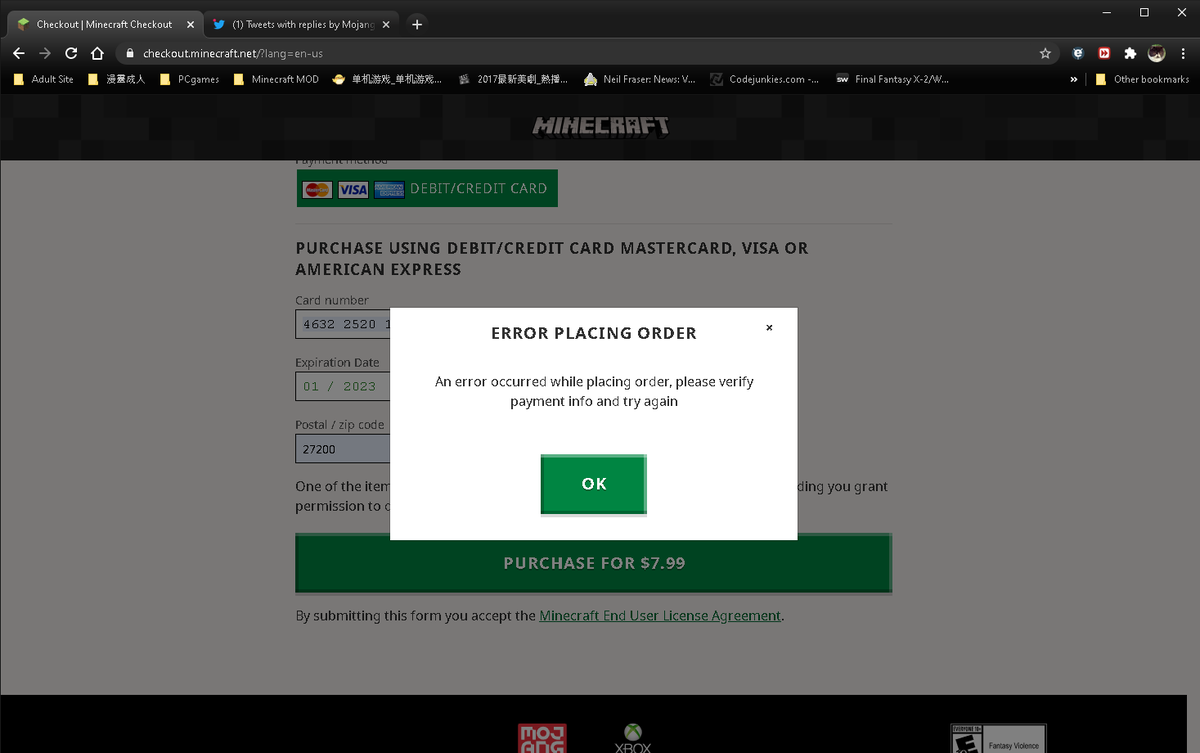 @MojangSupport Im trying to buy realms in pc java version but this is what i get. I try few days with different browser but still the same problem but its ok in windows 10 version.pic.twitter.com/RsAX4ns4LJ