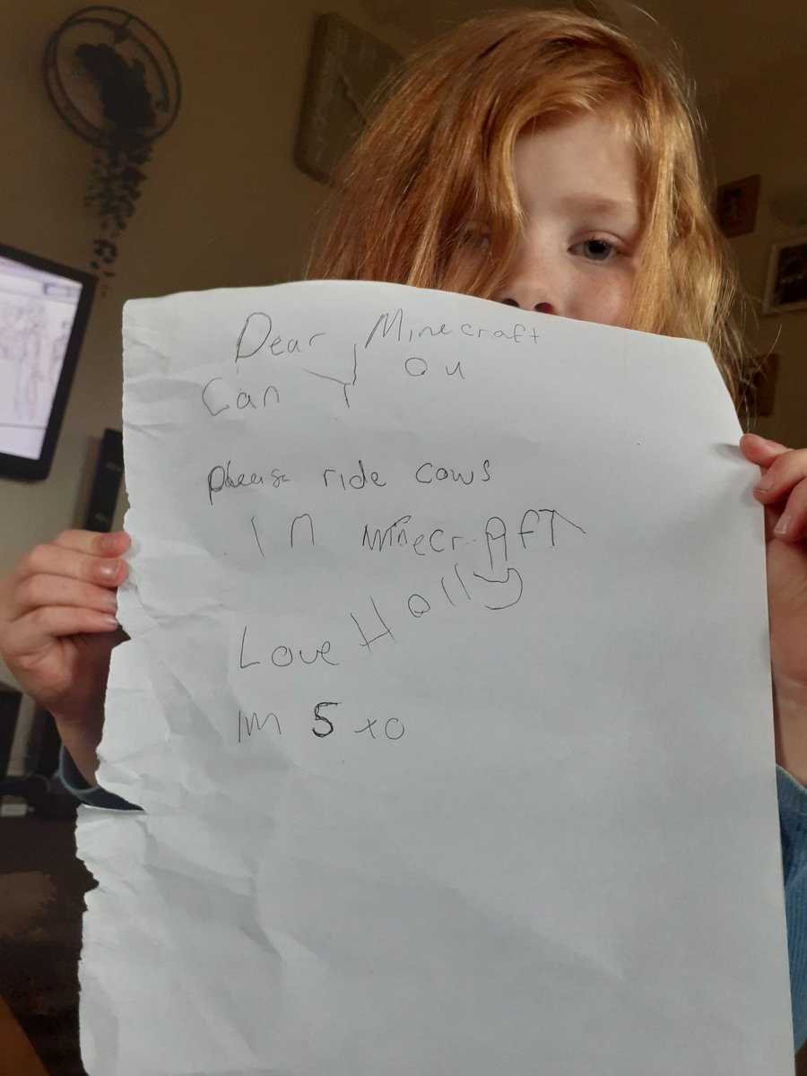 "Dear minecraft can you please ride cows in minecraft love Holly im 5 xo" @MojangSupport @Mojang @Minecraft @TrendMeMEOWpic.twitter.com/J5qH4RRlWa
