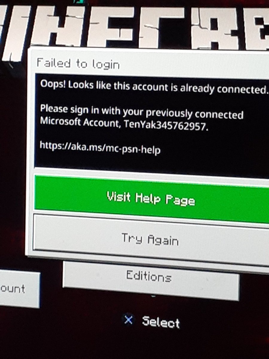 @MojangSupport I get this error when I try to login to my Microsoft account that is associated with my Minecraft ps4.pic.twitter.com/eeoEOp2Auq