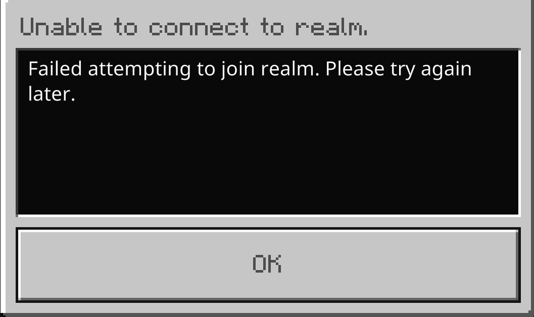 @MojangSupport Getting this all morning, again. Honestly, what is going with your Realm service of late, its just constant issues, and to think we pay for this monthly too.pic.twitter.com/ghMbKn2Ux9