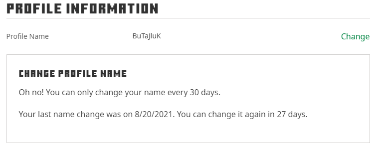 @MojangSupport Hello, sorry to bother you, but my account has been repeatedly accessed and my username changed without my consent, could you help me change my profile name back? My original -and actual- profile name is "OmegaE01", as can be seen here as well as my Twitter name.pic.twitter.com/t2Uz73qEBi