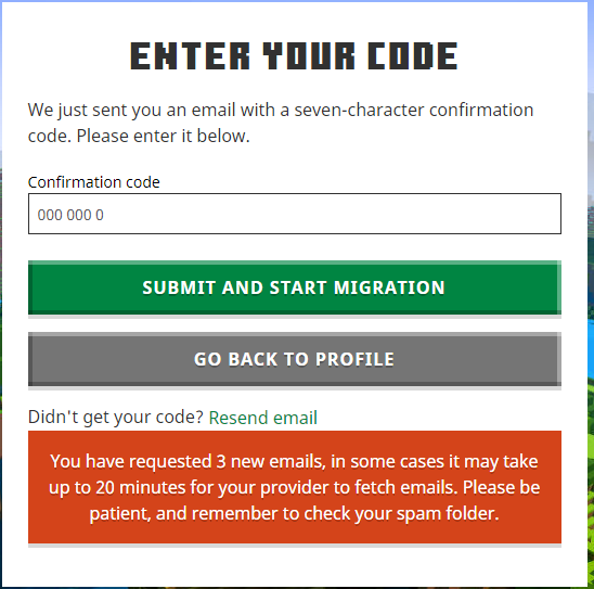 @MojangSupport Hello, It seems that for some reason I am not receiving the email with the verification code that you are asking me for the migration. I made several attempts over a few hours, and they don't even seem to get there.pic.twitter.com/A3P7uRfBET