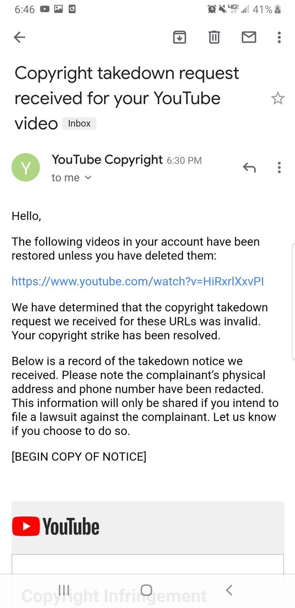 @TeamYouTube thank you for acting quickly and decisively to reinstate my video after it was falsely striked by someone with an axe to grind. Less than 12 hours at that. <3pic.twitter.com/hrPy26avp3
