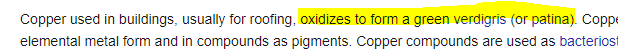 that's what I meant by oxidation (reading about it now, it is not a standard Cu + O reaction, looks like other things mix in as well)pic.twitter.com/Jo8BEe3nQZ