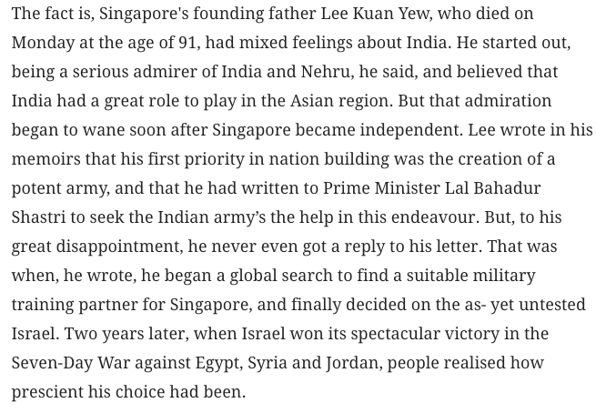Pretty interesting commentary on's Lee Kuan Yew learned disdain for India from an Indian.https://scroll.in/article/715567/why-singapores-lee-kwan-yew-stopped-admiring-india …