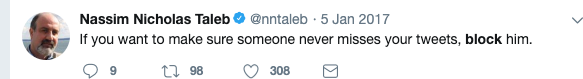 Was surprised that thread didn't get more traction. He is ridiculous. I lol'd multiple times going through his tweets on blocking.