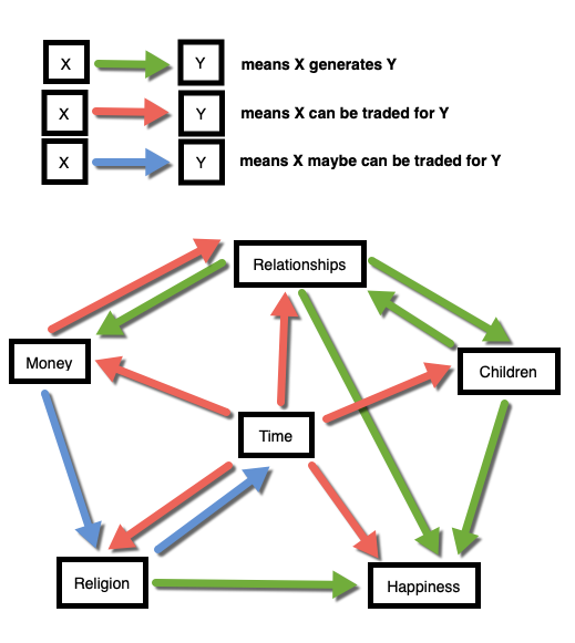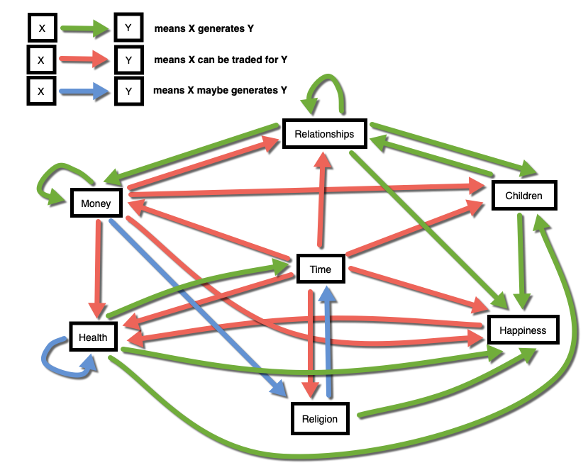 Indeed. Money can free up time. But money can also buy you more health/lifespan. Perhaps the chart could have “health” as one of the nodes.