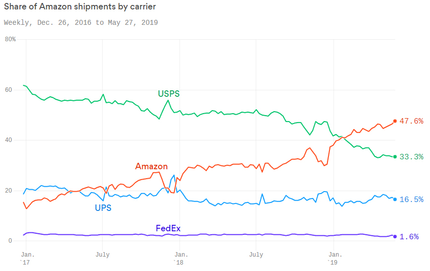 I think you and I both saw that article where WSJ claimed that 50% of amazon packages were...delivered by Amazon. And then we expressed skepticism? It's hard to believe.pic.twitter.com/q0oIKrZluL