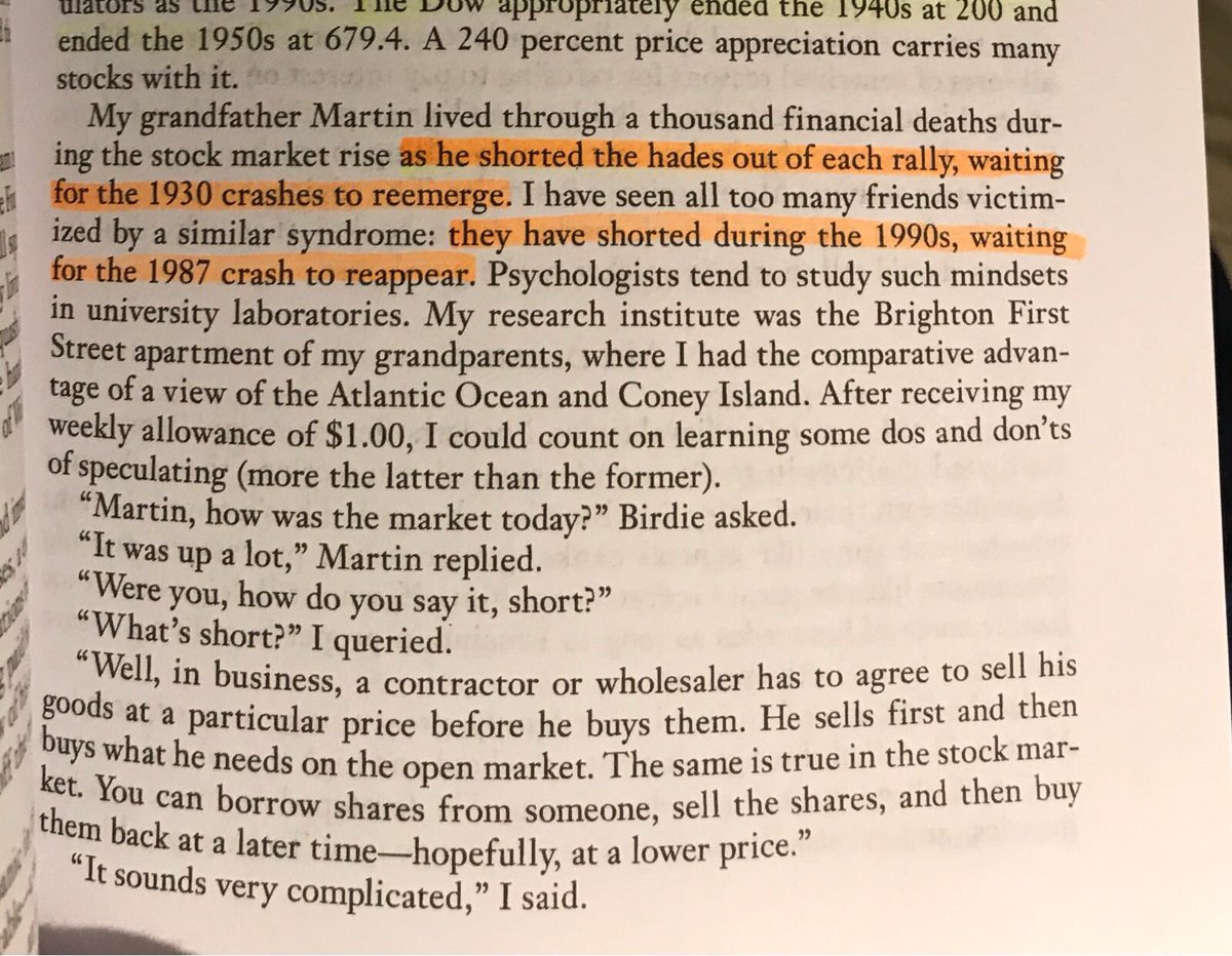 “My grandfather lived through a thousand financial deaths during the stock market rise as he shorted each rally, waiting for the 1930s crash to re-emerge. I have seen friends victimized by a similar syndrome: they shorted during the 1990s waiting for the 1987 crash to reappear.”pic.twitter.com/6Ji6PWoqkA