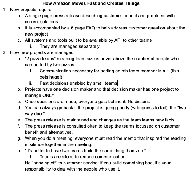 I've been trying to craft a single page document which fully explains how Amazon, a huge company, is able to be so fast and nimble.pic.twitter.com/aJLVp0p9Qt