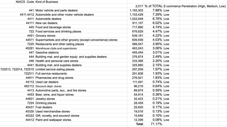 These categories (this is US census data IIRC) amounted to about 71% of total retail in 2017 (I did this a while ago). So to me, only excluding cars, gas, and car parts is not enough. Anyways, while I don't think Amazon should be "regulated" (whatever that means), theypic.twitter.com/SAYCyPaJys