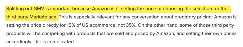 Oh yeah, one thing I forgot to mention. First, they've rolled a program to set prices on the third party marketplace. Second, because of their market power in certain segments and the encroachment of seller margin via advertising costs and fee raises, the indirectly set price.pic.twitter.com/ePZXe5hmHP