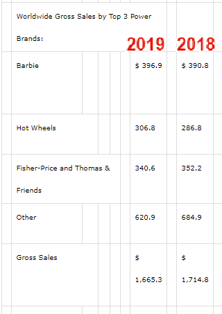 $MAT Their top brands tread water, others are slipping. Some improvement from action figures (not shown) but that isn't their intellectual property. Next two quarters will say a lot. What's the bull case at $5 billion market cap? Heads break even, tails lose everything.pic.twitter.com/Lf2tD3xKwy