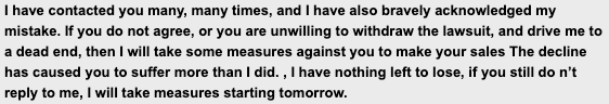 Let me give you a little peek of what goes on behind the scenes at Amazon. We sued a Chinese company on Amazon for trademark infringement and they are now extorting us.pic.twitter.com/gn0jHNnHsr