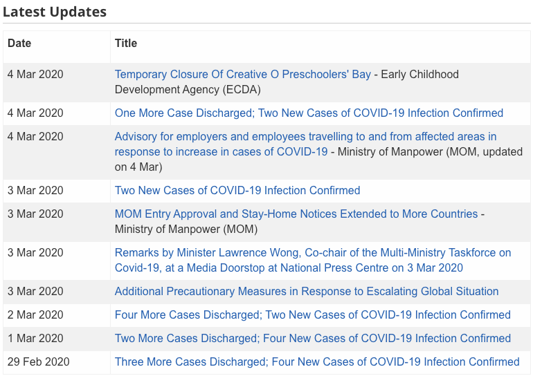Yep, there have been two more cases, up to 112 now.https://www.straitstimes.com/singapore/health/2-new-covid-19-cases-in-singapore-including-non-teaching-staff-at-pre-school-at?xtor=CS3-20&utm_source=STiPad&utm_medium=share&utm_term=2020-03-05%208%3A03%3A21 …