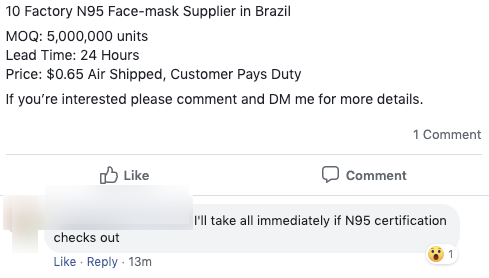 Yet another huge deal being done for masks on Facebook.pic.twitter.com/3qqypXXE1K