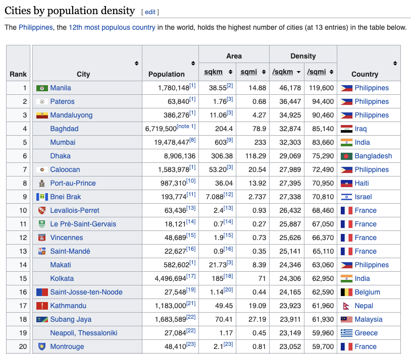 I never would've guessed that Manila is the densest city in the world...and I've been there! https://en.wikipedia.org/wiki/List_of_cities_proper_by_population_density …pic.twitter.com/GJbOS0QdYm