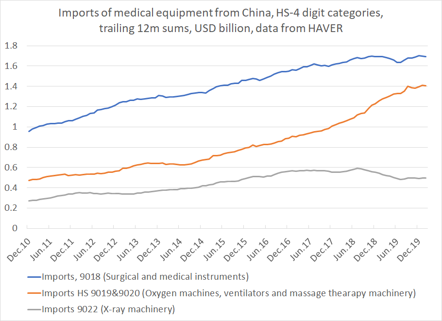Imports from all sources were actually rising in HS 9019 and 9020 (9019 is a bit broader than ideal, it includes some non respiratory related equipment) 2/xpic.twitter.com/MgNSZmNXm3
