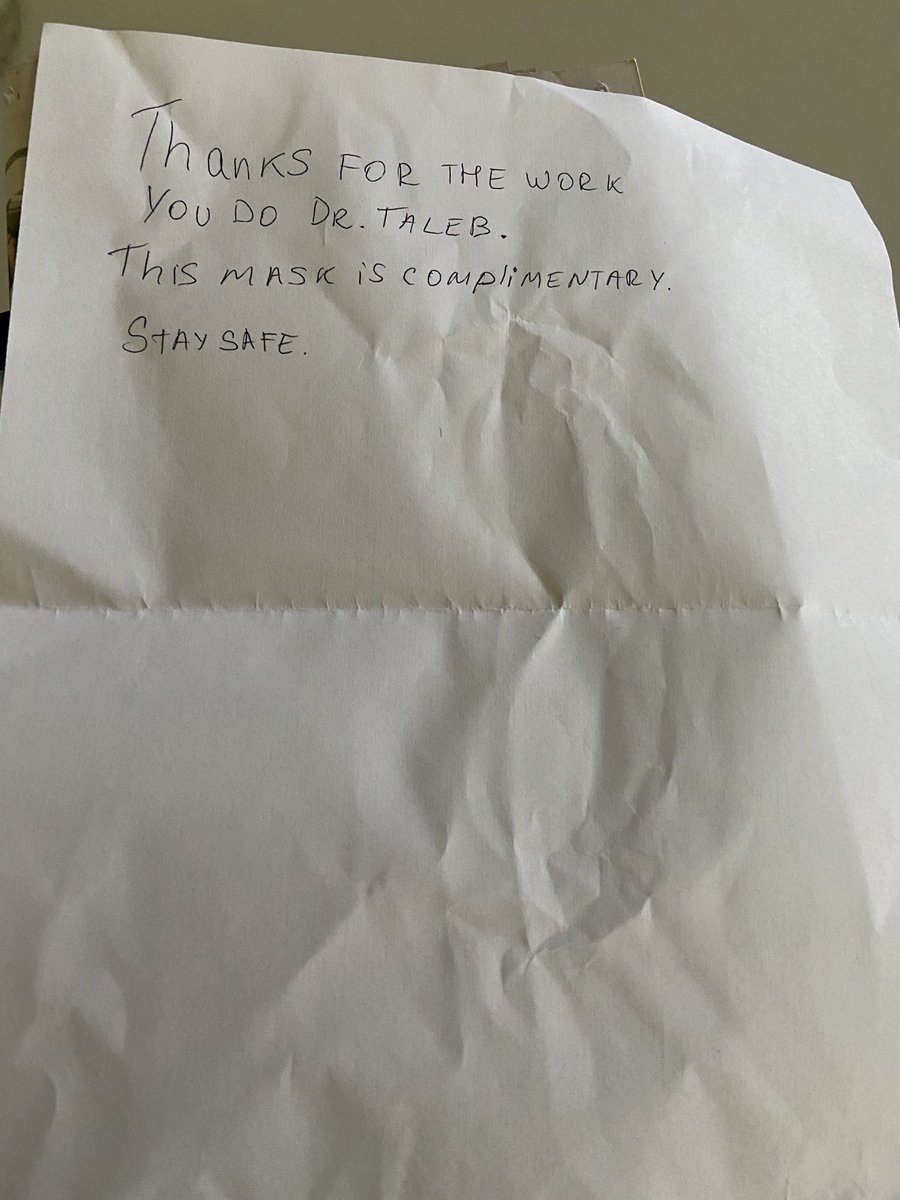 I feel like i saw another image of him wearing masks but this was all i could find (very recent):https://twitter.com/nntaleb/status/1253810910331899904 …