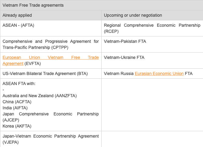 Crazy how many different FTAs Vietnam is signing or has signed. Would like to compare vs. China.pic.twitter.com/lPc2fE6BZy