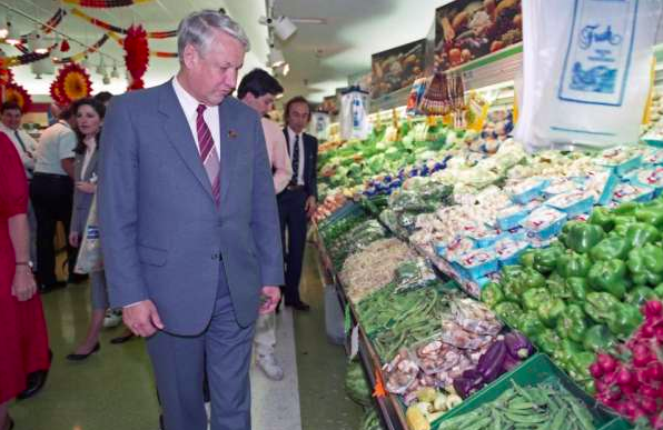 I suspect these photos were staged, but they're still great. Boris Yeltsin impromptu visit to a grocery store in Houston, TX in 1989.pic.twitter.com/njzzZhLa90