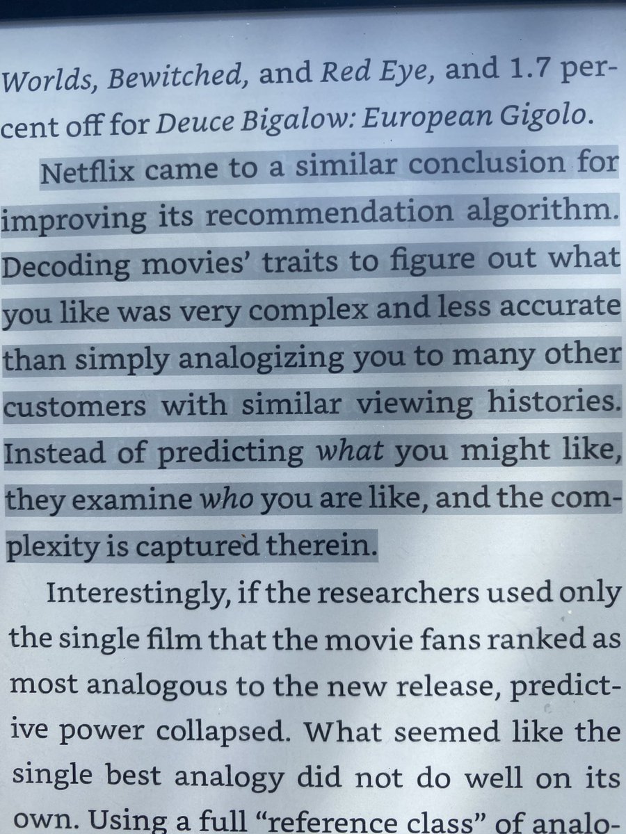 Based on the principle of analogies, Netflix recommendation algo is not based on what you might like but who you are likepic.twitter.com/bFYGsjdQOG