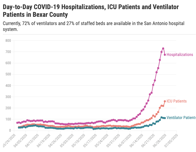 San Antonio's hospital system showing that the spike is real and not just young people testing positive being called a hospitalization.pic.twitter.com/UokKpvqSBd