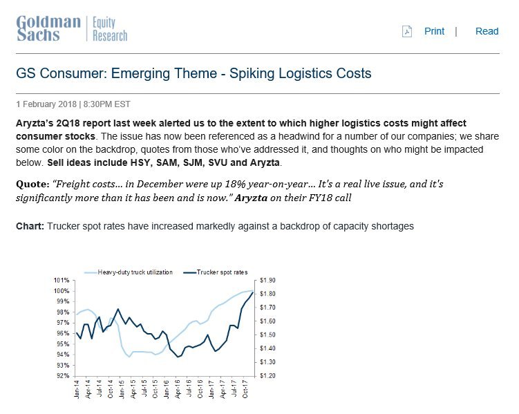 $MAT also mentioned delivery costs on their call last night