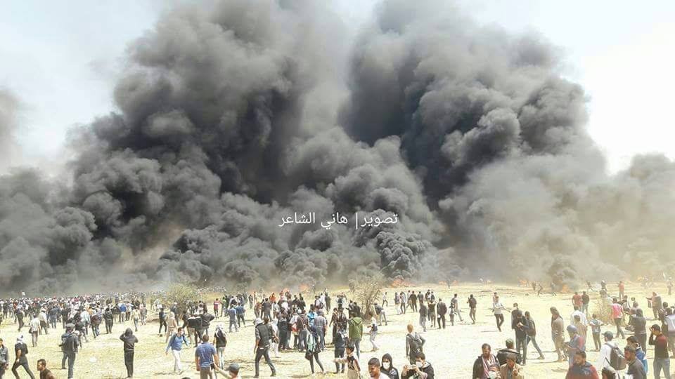 Crazy photos of the tire burning incident on the palestinian/israeli border. In particular the homemade gas masks are ... staggering. All from here: https://www.facebook.com/alghadnewspaper/ …pic.twitter.com/j7HF6r50R2