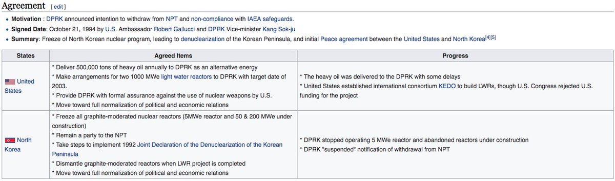 https://en.wikipedia.org/wiki/Agreed_Framework … https://www.cnn.com/2013/10/29/world/asia/north-korea-nuclear-timeline---fast-facts/index.html … https://www.armscontrol.org/factsheets/dprkchron …