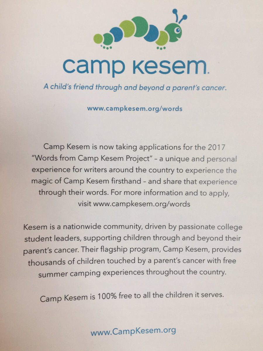 @CampKesem, that provides free summer camping for children touched by cancer? http://CampKesem.org#Dad2Summitpic.twitter.com/pTWaW3RvCk