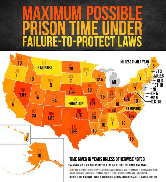 A1: 29 states in the US have FTP laws, but even where there are no FTP laws specifically, moms are criminalized under this legal theory, charged under variations of accountability laws, aiding & abetting, even battery or murder.