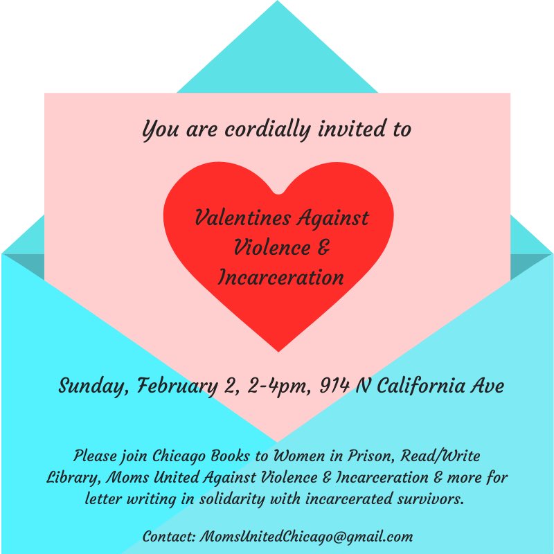 Join us this Sunday, Feb 2, 2-4 for card writing to incarcerated survivors & letter writing to the SA & the Gov seeking their release. Hosted by @ChicagoBWP @TheChibrary & MUAVI. All ages, accessible, abolitionist. Event page: https://facebook.com/events/s/valentines-against-violence-in/593563957863689/?ti=icl … #FreeThemAllpic.twitter.com/zBVxnBTr2W