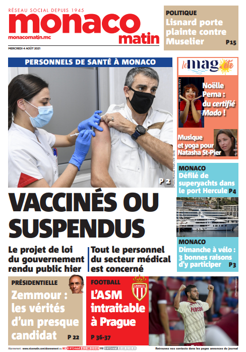 Voici la une de Monaco-Matin de mercredi 4 août 2021.