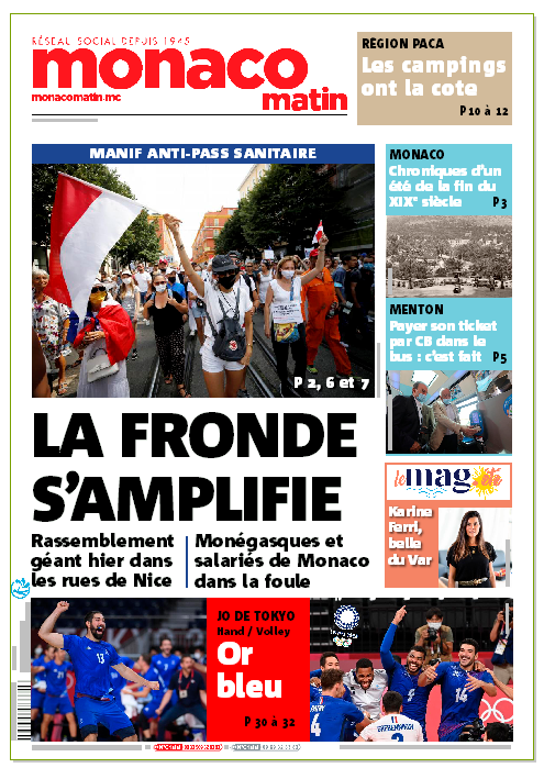 Voici la une de Monaco-Matin de mardi 3 août 2021.