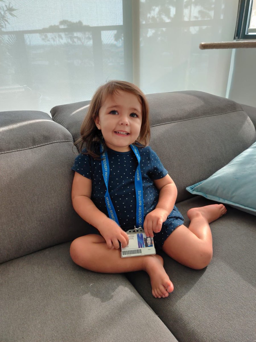 Look over to see my niece has pulled my lanyard out of my bag and clearly wants to join