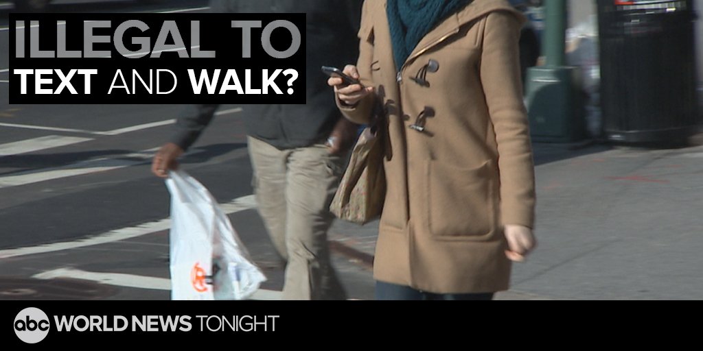 World News Tonight @WNTonightCould distracted walking become a criminal offense? Some NJ lawmakers hope so.Tonight@CeciliaVegaABC has the story pic.twitter.com/N4EXg5IFDe0 retweets 2 likes -