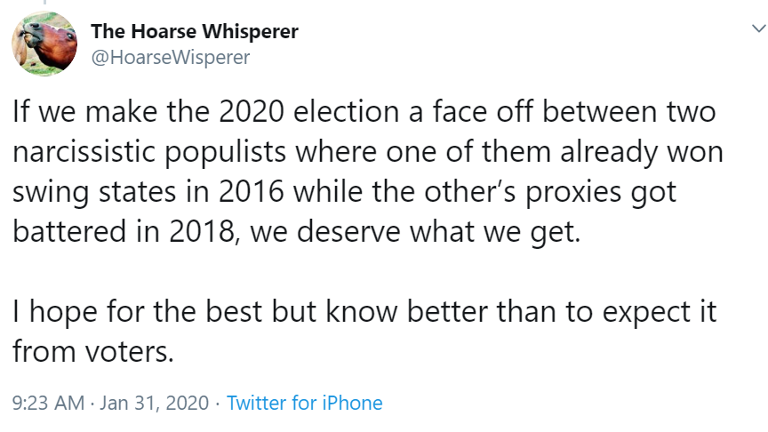 Democrats couldn't even hold a caucus right the same week Trump will be acquitted. Don't ever let mainstream media idiots and corporatists tell you they're 5d chess geniuses. I fart more wisdom then these people and I'm a loud mouth youtuber.