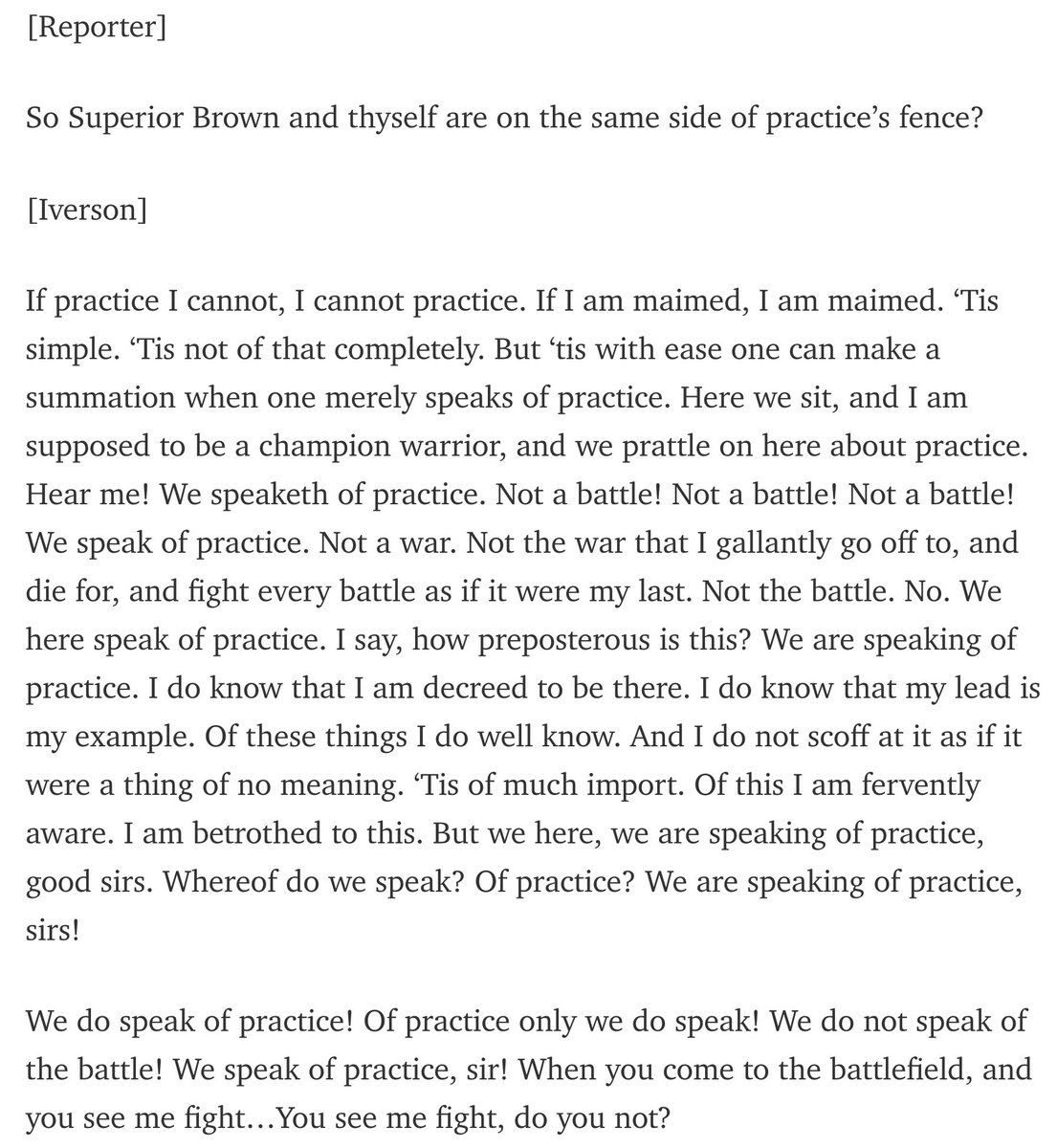 @alleniverson’s epic “practice?” rant into Shakespearean masterpiece: http://on.si.com/1pBMH9I |pic.twitter.com/vHZyNgUYiQ