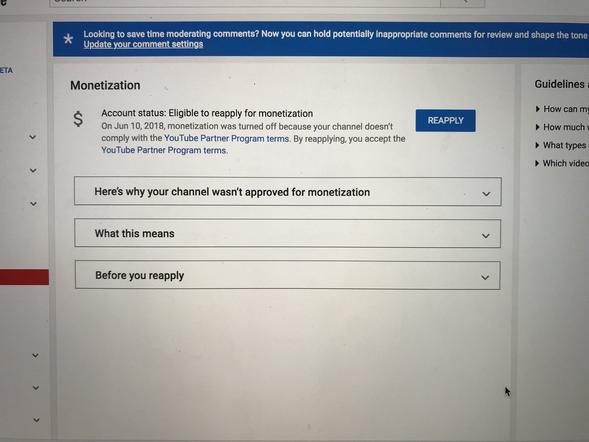 “Duplication” was the reason given... so, if I remove any duplicate content then I can reApply with reasonable assurance of approval for REmonetization, yes..?pic.twitter.com/1AElfQL7Lh