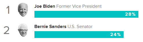 Biden has fallen to the lowest support among Democratic primary voters nationwide since we began tracking him early last year. Sanders trails Biden by 4 points going into